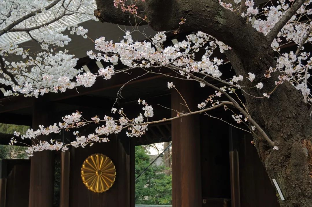 “东京招魂社”始建于1869年,10年后更名为靖国神社。随神社规模扩张,樱花的栽种规模逐步扩大,其中大半为染井吉野。因为合祭在此的阵亡者,能作为“英灵”享受国家祭祀和天皇参拜的“最高荣誉”,靖国神社成为支撑军国主义的精神据点(1978年,靖国神社将14名二战甲级战犯入祠合祭。其后,天皇不再参拜,首相等政要则屡屡参拜,引发“靖国神社”问题)。